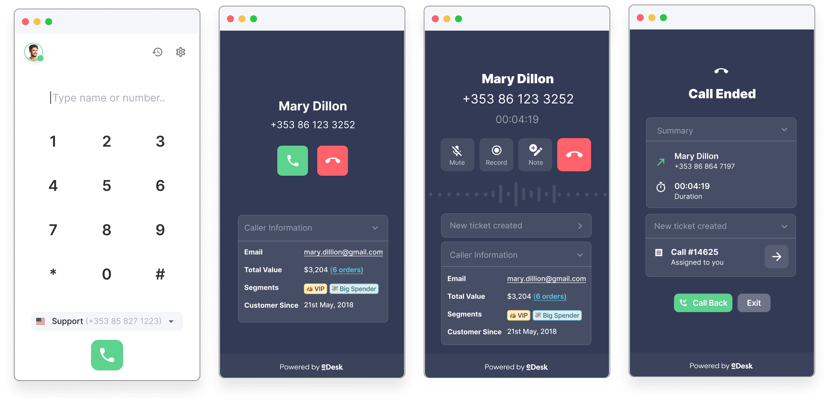 To validate demand quickly, we integrated Aircall’s pre-built dialler into eDesk. Users could access it from the product’s header, keep calls active while navigating, and automatically convert calls into tickets.